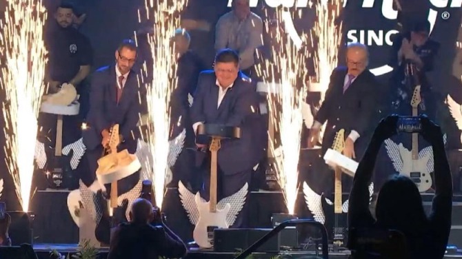 The festivities concluded with Hard Rock’s signature “guitar smash.”