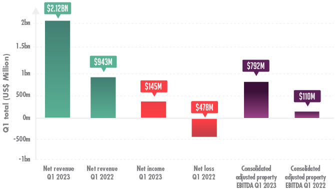 Sands’ net revenue was $2.12bn, up 125% from the prior year’s last quarter. The company’s operating income was $378m, while the last quarter of 2022 saw an operating loss of $302m. Net income from 2023 first quarter continuing operations also rose 130% year-over-year. Consolidated adjusted property EBITDA was $792m.