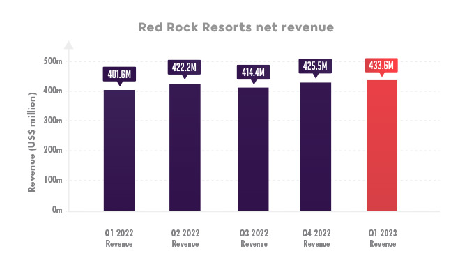 Net revenue specifically from Las Vegas operations reached $430m, accounting for 99.2% of Red Rock Resorts’ total revenue for Q1. This also represents an increase of 7.6%.