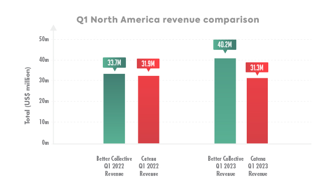 By comparison, fellow affiliate Better Collective saw a 19% increase in North American revenue. Ohio and Massachusetts sports betting launches were largely responsible.