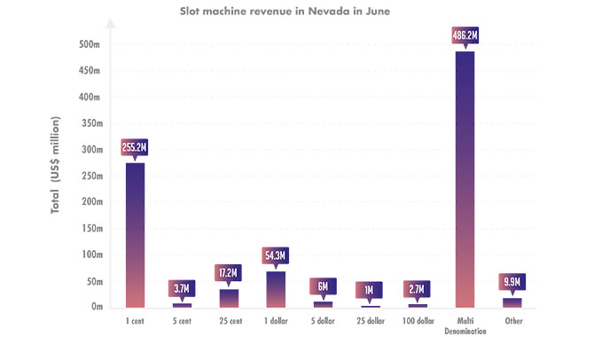As displayed in the graph below, multi-denomination and one-cent slot machines dominate the revenue generated from slots, with the two being responsible for a combined revenue of $741.4m.