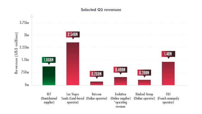 When compared to other quarterly results, IGT has risen above several other well-known companies’ Q2 revenues (the below is a selection of companies from around the industry, for comparison, rather than direct rivals).
