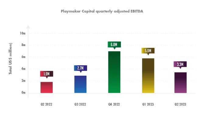 Playmaker Capital also posted an adjusted EBITDA, excluding its corporate segment, of $3.3m, which increased 24% on a pro forma basis from Q2 2022. Including the corporate segment, the adjusted EBITDA posted was $2.2m, a yearly increase of 34%.