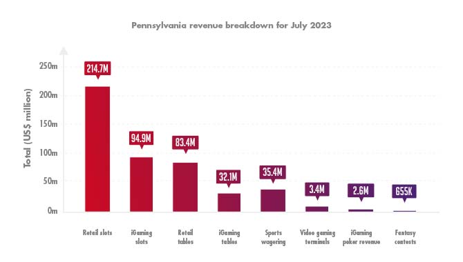 The Pennsylvania Gaming Control Board has reported its financial information for July 2023. The state’s total combined revenue increased 9% in July to $467m year-on-year.