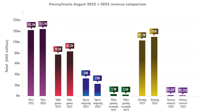 Pennsylvania August iGaming revenue increases 35% to $145m