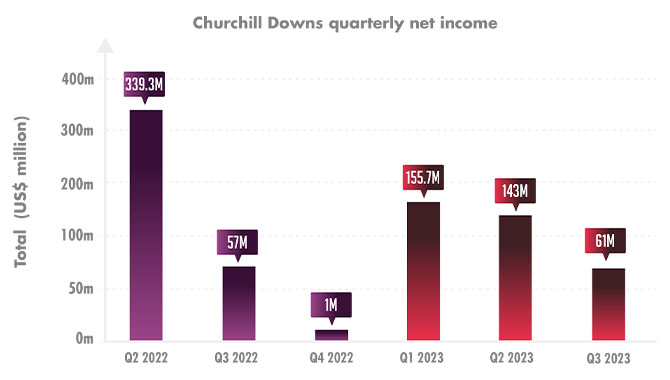 Churchill Downs has released its Q3 financial report for 2023, which showed record revenue for this particular time of year, an increase of 49% to $572.5m. Net income for this quarter was also up 7% year-over-year to $61m.