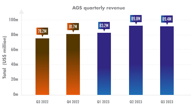 AGS (American Gaming Systems) has reported its third-quarter financial results, including a total revenue increase of 14% year-on-year to $89.4m. The supplier has seen incremental growth since this time last year, with its electronic gambling machine (EGM) sector performing the best, and accounting for $81.9m of the quarter’s total.