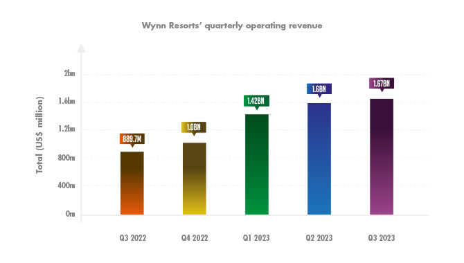 Wynn Resorts has released its third quarter financial results showing an 87.7% increase in operating revenue year-on-year to $1.67bn. The luxury resort operator also managed to decrease its net loss annually from $142.9m to $116.7m; however, this is the first quarter of 2023 where Wynn has made a loss rather than profit.